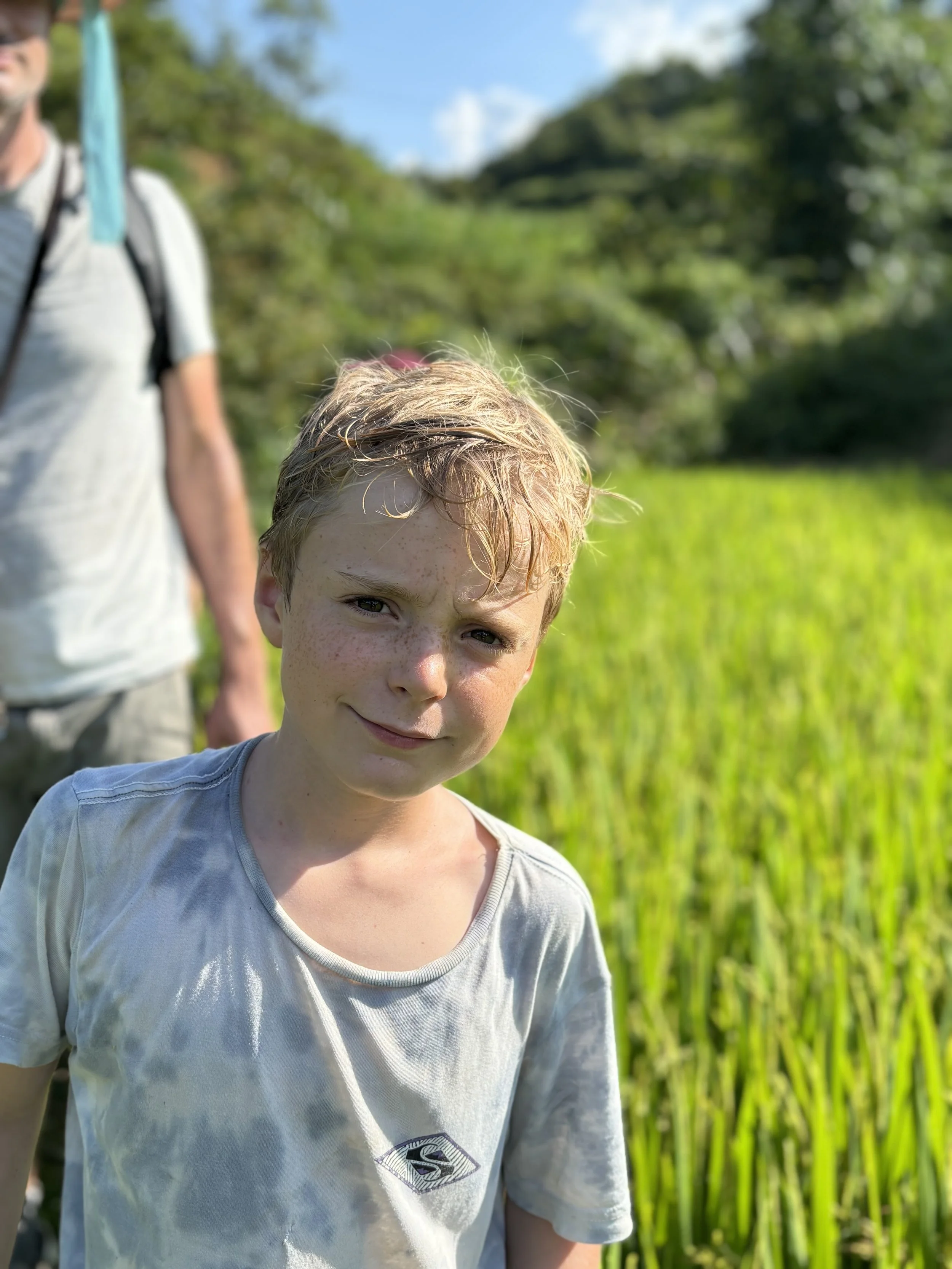 Your day begins with a short walk through quiet countryside, taking in rice terraces, forest paths or village trails depending on the season. The route is gentle and can be easily adjusted to suit the energy levels of little legs.