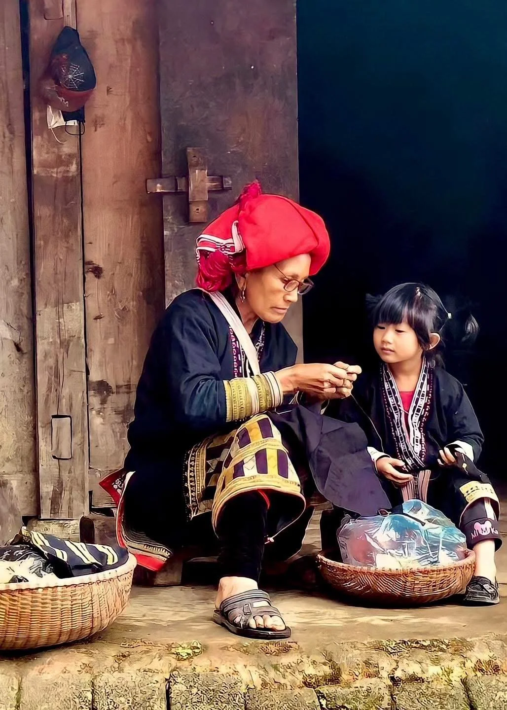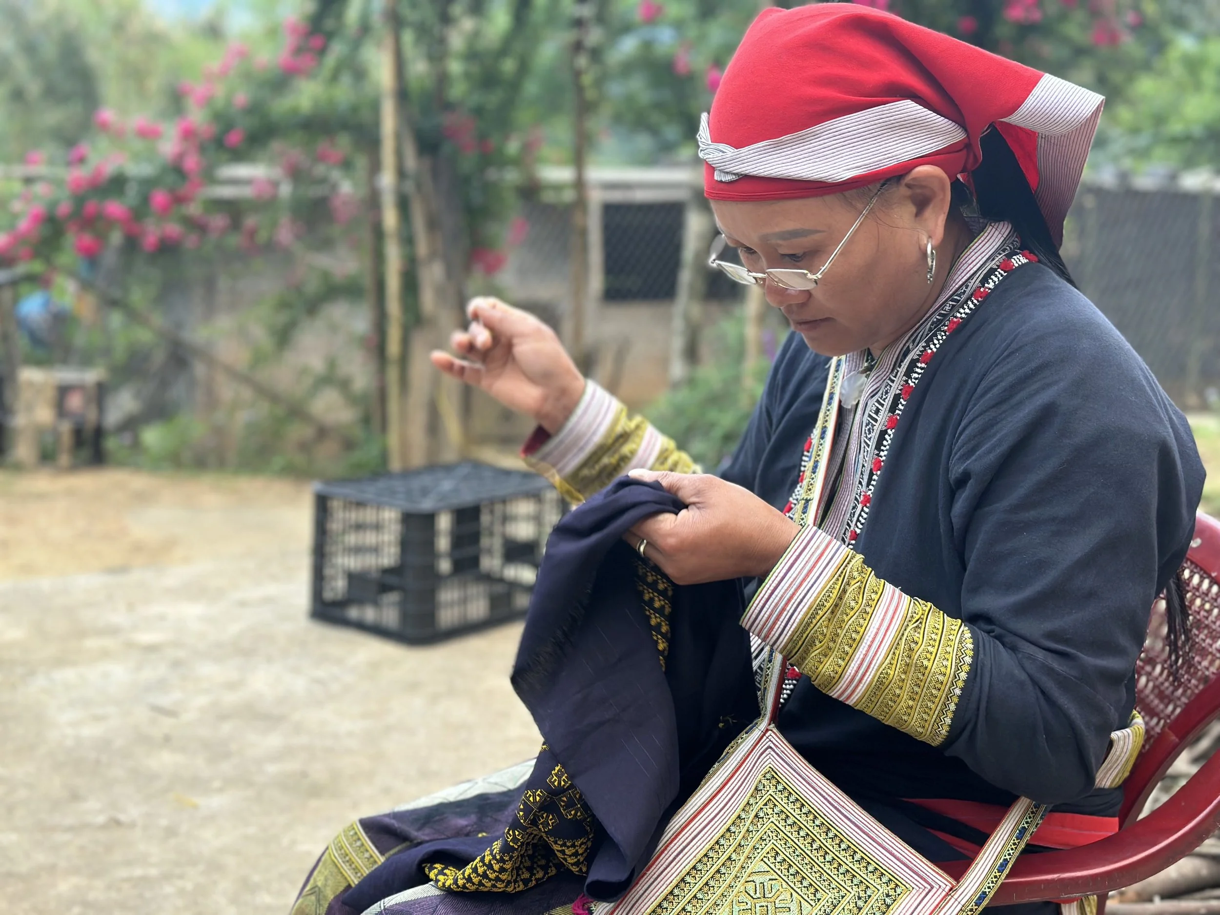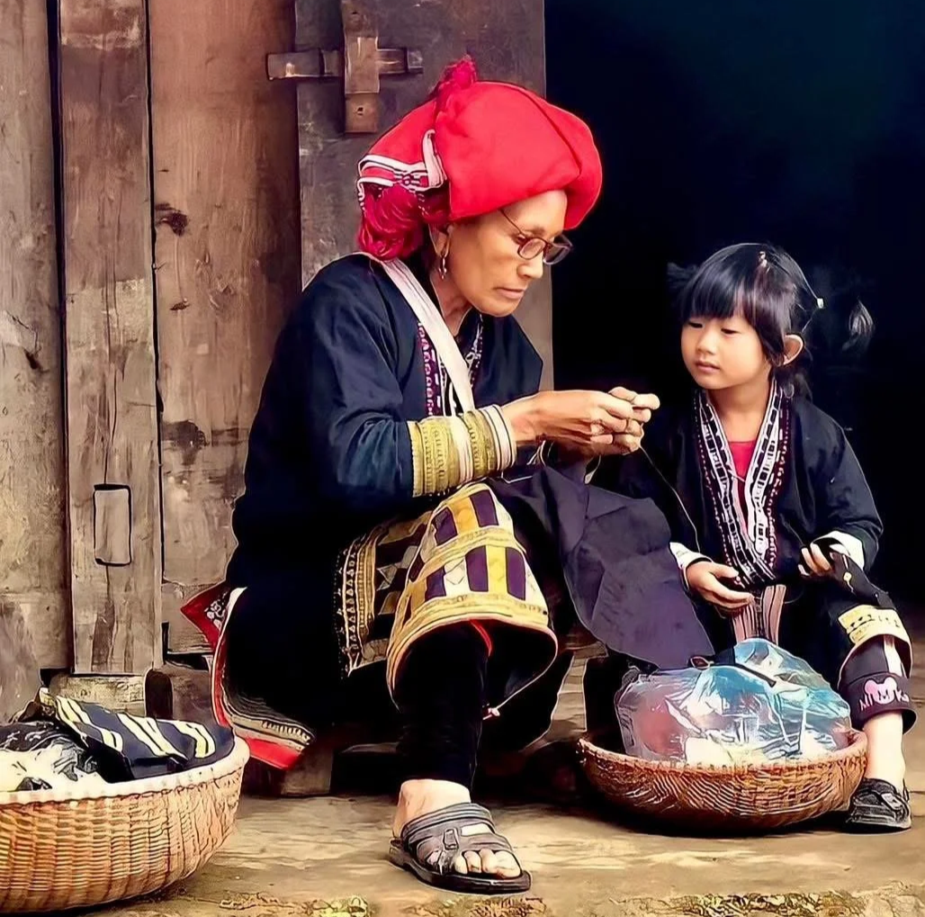 Red Dao women are known for their intricate embroidery, a skill passed down through generations. For them, stitching is almost instinctive a daily practice carried out with quiet concentration and care. The patterns they create are full of meaning, often symbolising nature, animals, and the key moments of life such as birth, puberty, marriage and death. Some motifs represent rice, trees, motherhood, or fatherhood.