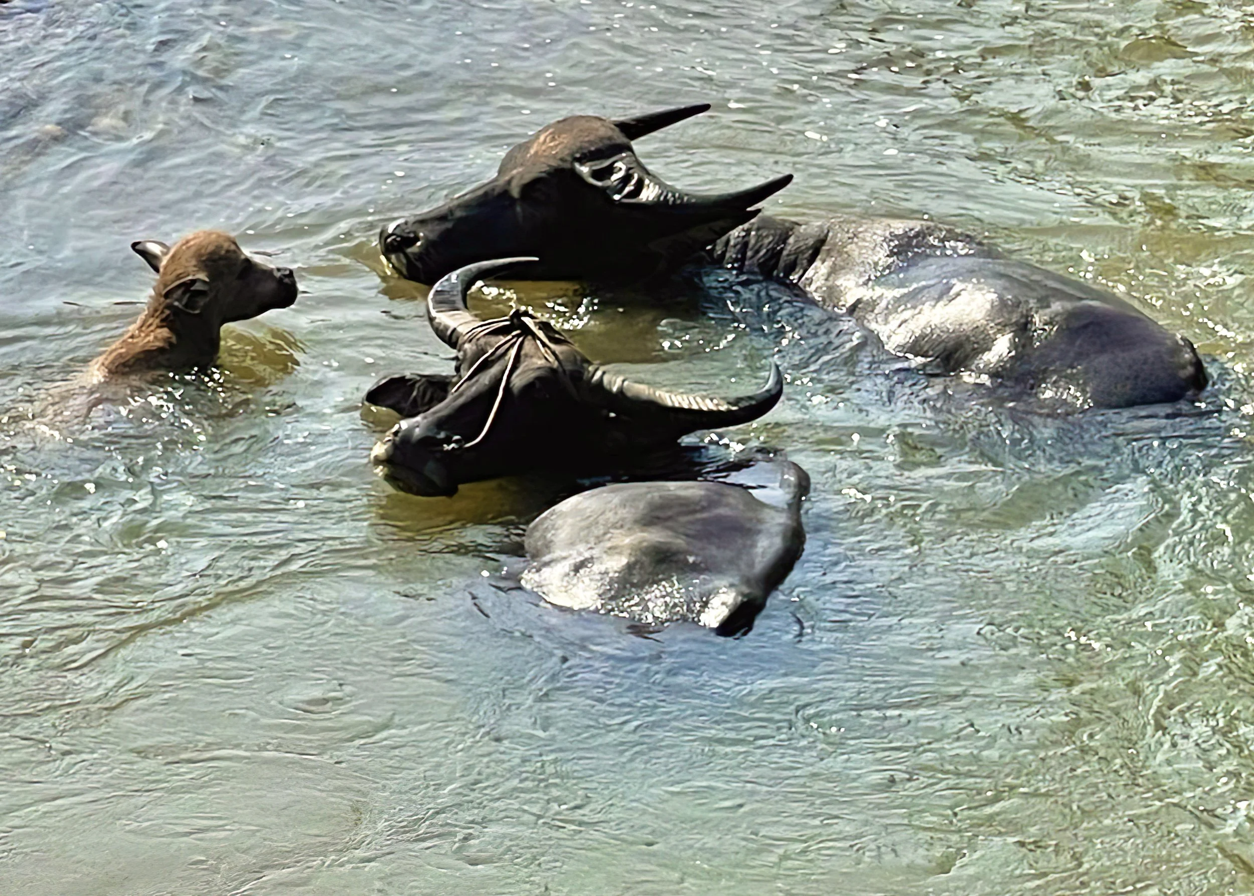 Cross rivers and waterfalls by foot, ferry, and kayak including the sacred waters of the Gam River.