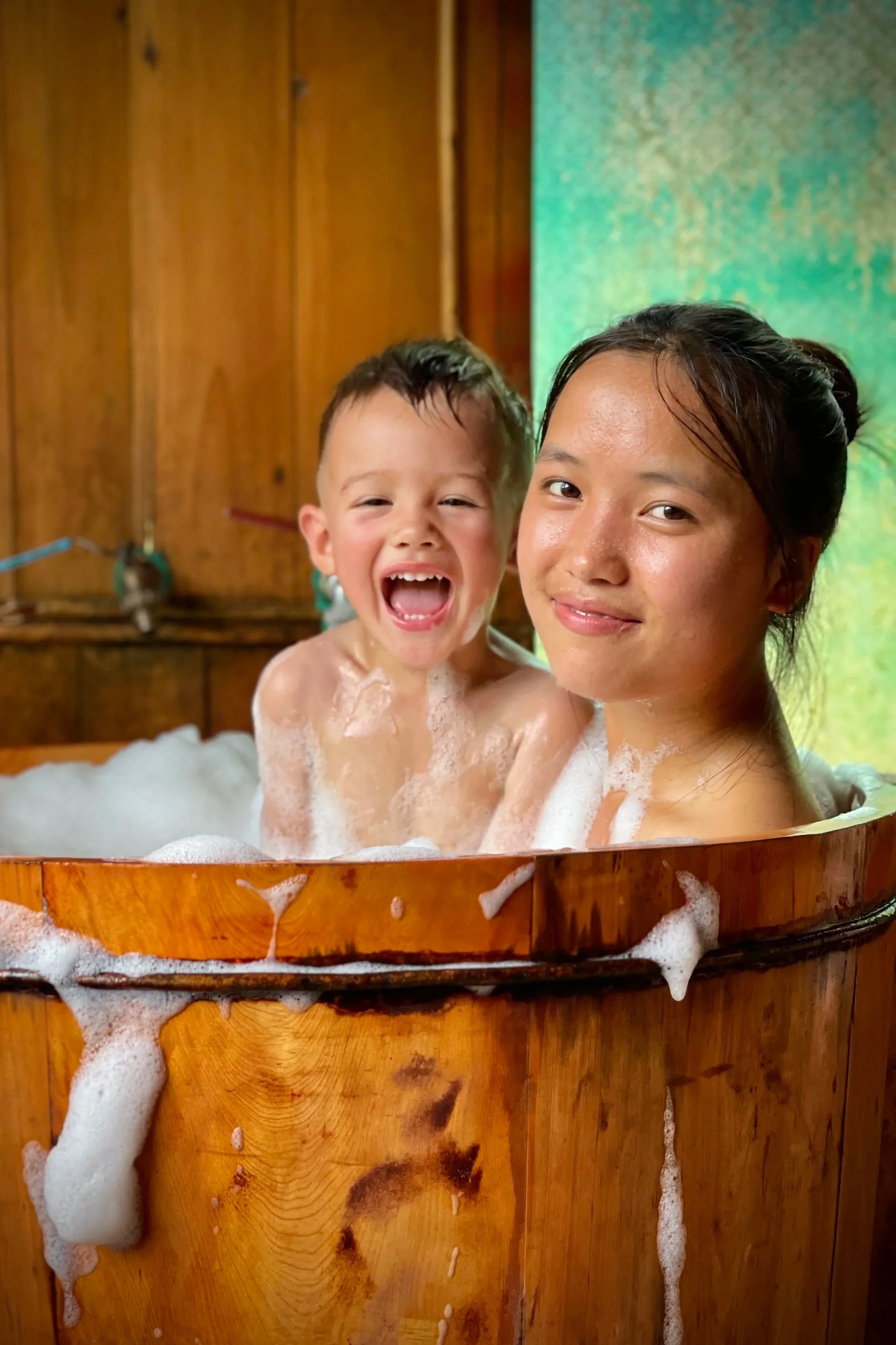 The baths are prepared using dozens of wild and cultivated plants, gathered from the surrounding hillsides. Fragrant leaves, roots, and bark are boiled for hours in large cauldrons until the water turns a deep reddish brown. The mixture is believed to carry a range of benefits: soothing tired muscles, improving circulation, and easing aches after long treks. Many also say the baths leave the skin refreshed and the mind calmer. The heat is strong, often surprisingly so, and it is common to take short breaks during the soak, stepping out and back in again until the body adjusts.