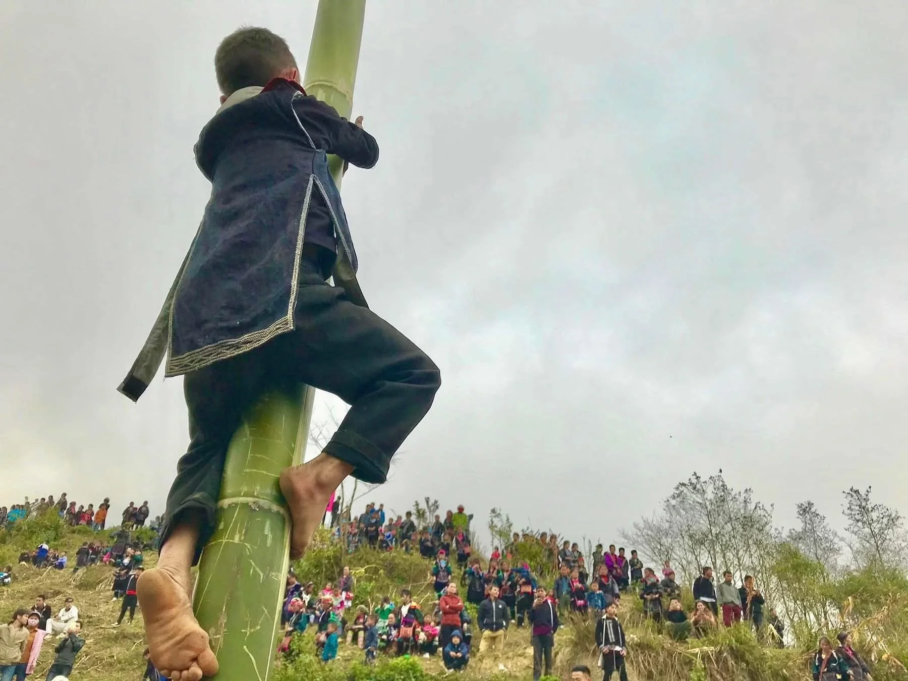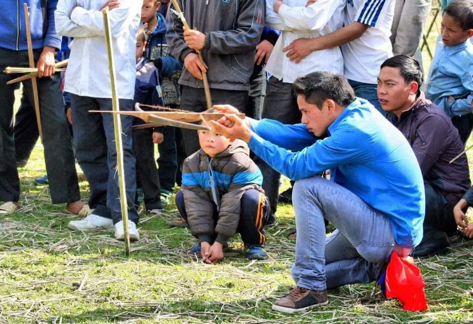 Bamboo wrestling, stilt walking, spinning tops, crossbow contests and tug-of-war take place alongside ném pao, the ball-toss game where young men and women meet, talk and flirt.