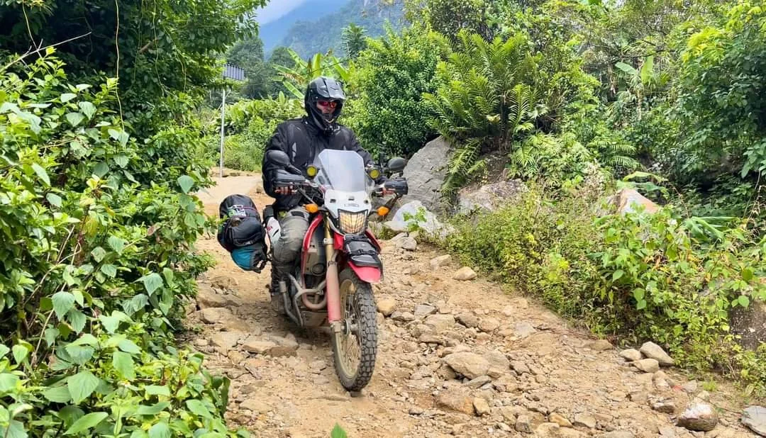 Accommodation is simple but varied: four nights include camping under the stars, a hotel for rest and refreshment, and two homestays with local families. The first night is spent camping in a peaceful spot where we forage and cook together, surrounded by mountains and far from any crowds. On the second day, the ride takes us through a remarkable cave path once used during wartime; it leads directly into a Thai village known for growing rich, aromatic coffee. That night, we stay in a small hotel for a warm shower and proper rest. On day three, the route gets rougher and more remote, cutting through rocky highlands to reach a traditional Làn Tèn village where time seems to slow. Here, we stay with a local family whose home reflects the old ways no hot showers, no Western toilet just deep tradition and generous hospitality. After a long day’s ride, it’s a rare kind of comfort that money can’t buy.